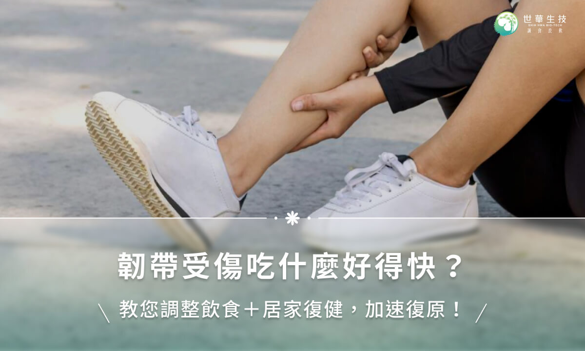韌帶受傷吃什麼才能快點好?除了接受治療,正確的飲食也能幫助韌帶復原!本文介紹韌帶受傷可以吃什麼幫助修復、不能吃什麼讓發炎更嚴重,並解答韌帶受傷常見問題和介紹合適的韌帶受傷保健品,為您的復原之路加把勁! 目錄:一、為什麼韌帶在運動中經常受傷?從結構與發炎機制談起 (一)韌帶是什麼?認識骨骼間的結締組織 (二)小心運動扭傷!詳解運動中的韌帶發炎與受傷成因 二、韌帶受傷吃什麼好得快?吃對食物,加速告別運動傷害! (一)加速韌帶復原飲食清單,吃這些啟動身體自我修復! (二)補充幫助修復韌帶斷裂保健食品,推進痊癒進度! 三、韌帶發炎吃什麼會更嚴重?韌帶受傷不能吃的食物一次看 (一)高飽和脂肪與油炸食物 (二)高糖食物與精緻加工食品 (三)酒精 四、韌帶受傷後怎麼保養?韌帶受傷常見問題詳解 Q1:韌帶受傷如何治療?常見的治療方式有哪些? Q2:韌帶受傷後如何日常保養與預防再受傷? Q3:韌帶受傷後,要如何進行復健運動? 五、韌帶受傷保健品品牌選擇:世華生技為您的復原之路加把勁! 一、為什麼韌帶在運動中經常受傷?從結構與發炎機制談起在探討韌帶受傷吃什麼能幫助恢復之前,先來深入了解常在運動中受傷的韌帶究竟是什麼,以及讓韌帶發炎、受傷的常見原因。 (一)韌帶是什麼?認識骨骼間的結締組織韌帶是一種強韌的纖維結締組織,主要由膠原蛋白纖維所構成,並含有少量彈性纖維,負責連接骨骼與骨骼,廣泛分布於全身的關節周圍。韌帶就像是強韌的橡皮筋,用來固定限制關節的活動範圍,防止關節產生過度或異常的位移。健康的韌帶可以穩固骨骼之間的連結,維持關節穩定,讓身體順暢地跑、跳和活動。不過,如果外力超過了韌帶可以承受的極限,就會造成韌帶損傷。(二)小心運動扭傷!詳解運動中的韌帶發炎與受傷成因在運動傷害中,「扭傷」是韌帶受傷最常見的種類,尤其是腳踝和膝蓋這兩個地方。運動時,如果姿勢不正確或是受到外力衝擊,例如打籃球落地時腳踝內翻、跑步時不慎踩空等,都可能導致關節活動超過韌帶可以負荷的範圍,造成韌帶纖維被過度拉扯而受到損傷。一般輕微的韌帶受傷可能只是部分纖維撕裂,但嚴重時可能會導致韌帶完全斷裂。只要韌帶受傷,身體就會立即啟動發炎反應來修復。這是一種自然的保護機制,主要是為了清除受損組織,同時啟動細胞修復機制重建,這過程中會伴隨以下常見症狀: 劇烈疼痛:受傷當下會感到撕裂疼痛,之後只要活動受傷部位,疼痛感就會更加明顯。腫脹:受傷部位會因為發炎反應而腫脹,這是身體正在進行保護與修復的表現。瘀血:如果韌帶嚴重撕裂,可能也會傷及周圍的小血管,導致皮下出血,形成瘀青。關節不穩定:韌帶受傷後,關節的功能減弱,可能會感覺關節變得不太穩定,無法正常支撐身體。活動度受限:疼痛和腫脹會限制關節的活動範圍,甚至無法做出某些動作。按壓痛:觸摸受傷部位時會感覺到明顯的疼痛。 發炎反應雖然是修復過程的一部分,但如果發炎太過劇烈或持續太久,可能會阻礙復原進度。因此,在韌帶受傷的急性期可以適當的冰敷,幫助收縮血管、減輕疼痛與腫脹,有效地控制發炎反應。更重要的是,除了遵從醫師的指示好好休息、進行物理治療之外,透過飲食來提供身體充足能量、維持新陳代謝,並幫助維持免疫系統正常運作,都是幫助身體復原的重要關鍵。 守護健康,從現在開始!點擊下方連結,讓世華生技成為您的健康夥伴。立即選購 二、韌帶受傷吃什麼好得快?吃對食物,加速告別運動傷害!想要加速受傷韌帶的恢復速度,必須為身體製造一個良好的修復環境,並持續提供修復所需的營養成分。接下來將深入探討哪些食物和保健品能夠幫助韌帶復原,讓您快速告別運動傷害,重返健康生活。 (一)加速韌帶復原飲食清單,吃這些啟動身體自我修復!韌帶受傷後,除了乖乖休息、接受治療,吃什麼食物也是加速復原的關鍵!想知道韌帶受傷後該怎麼吃、有哪些蔬菜水果可以幫助復原嗎?以下將為您整理出 6 大幫助韌帶復原的關鍵營養素與食物來源,讓您吃對食物,啟動身體的修復力。 1. 優質蛋白質韌帶的主要成分是膠原蛋白,而蛋白質就是構成膠原蛋白的基本單位。因此,當韌帶受傷時,攝取足夠的優質蛋白質,就像為身體提供足夠的建材,幫助身體修復受傷的韌帶組織。【推薦來源】雞蛋、魚肉、雞胸肉、瘦肉、牛奶、優格、豆腐、豆漿等動植物蛋白質。 2. 鈣質鈣質是構成骨骼的重要成分,也參與了肌肉收縮和神經傳導的過程。攝取足夠的鈣質,可以幫助穩定骨骼與韌帶的連接,同時也能減少因肌肉抽筋所造成的二次拉傷風險。【推薦來源】小魚乾、蝦米、吻仔魚與深綠色蔬菜(芥藍菜、莧菜、菠菜等)。 3. 維生素 C韌帶受傷時,攝取維生素 C 可以促進膠原蛋白合成,幫助膠原蛋白正確地排列,形成穩固的結構,讓新生的韌帶更加結實。【推薦來源】芭樂、奇異果、柑橘類水果、莓果類、甜椒、十字花科蔬菜(如花椰菜)、苦瓜都是維生素 C 的良好來源。 4. Omega-3 脂肪酸發炎是韌帶受傷後的自然反應,但如果發炎過度,反而會帶來更多疼痛,並拖延復原時間。Omega-3 脂肪酸能幫助身體調節發炎反應,減輕腫脹與不適感,讓復原過程更順利。【推薦來源】鮭魚、鯖魚、鮪魚等深海魚類以及亞麻籽油、奇亞籽、核桃等。 5. 鋅補充足夠的鋅有助於蛋白質和膠原蛋白的合成,鋅參與