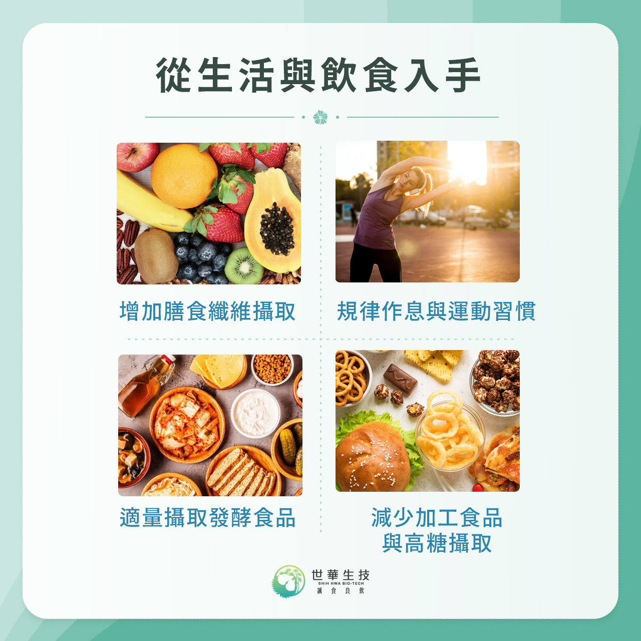 充足睡眠、避免熬夜,以及每日適度運動,可促進蠕動,降低壓力對菌群的影響,有助於維持菌相平衡。