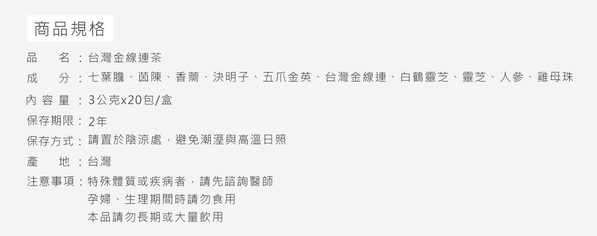 。添加決明子、台灣金線連、白鶴靈芝、靈芝、人參