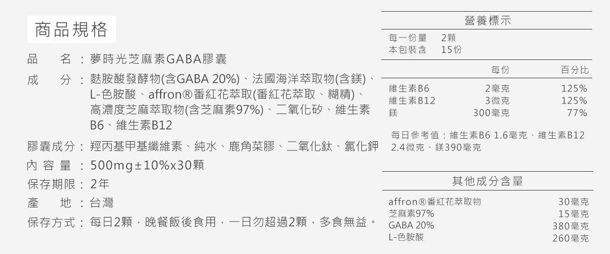 夢時光芝麻素GABA膠囊