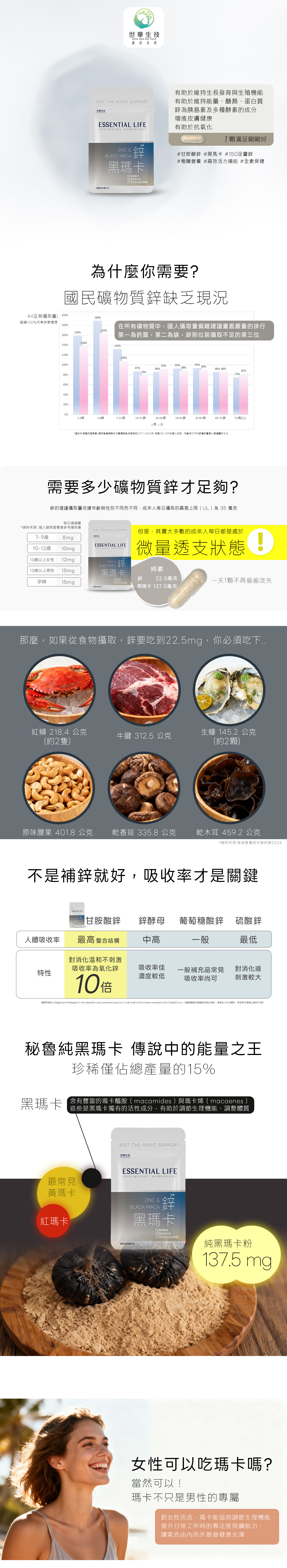 ⚠ 鋅補充劑上限攝取量(UL):成人每日 35 mg。本產品每份 22.5 mg,在建議安全範圍內。4 歲以下孩童不建議使用。有特殊疾病者,建議諮詢醫生後評估使用。